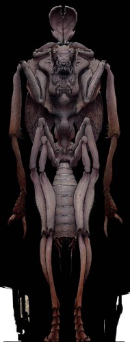Despite the long and difficult process, the director was satisfied with the final creatures. “Beautiful, fast, like a stealth bomber, really aerodynamic, sharp, yet when you see it, you see an insect”, said del Toro, “an insect that has changed, but nevertheless an insect. We used different genetic codes from different species. When I spoke with them about the colors and textures, we always said ‘look at the books – be absolutely faithful to nature. Let’s make these creatures real’. […] [It is] a monster that is not a monster, what I call the National Geographic approach – the creature has to be beautiful and fascinating because of this, not extra spikes and huge teeth and glowing eyes and hairy bottoms.”