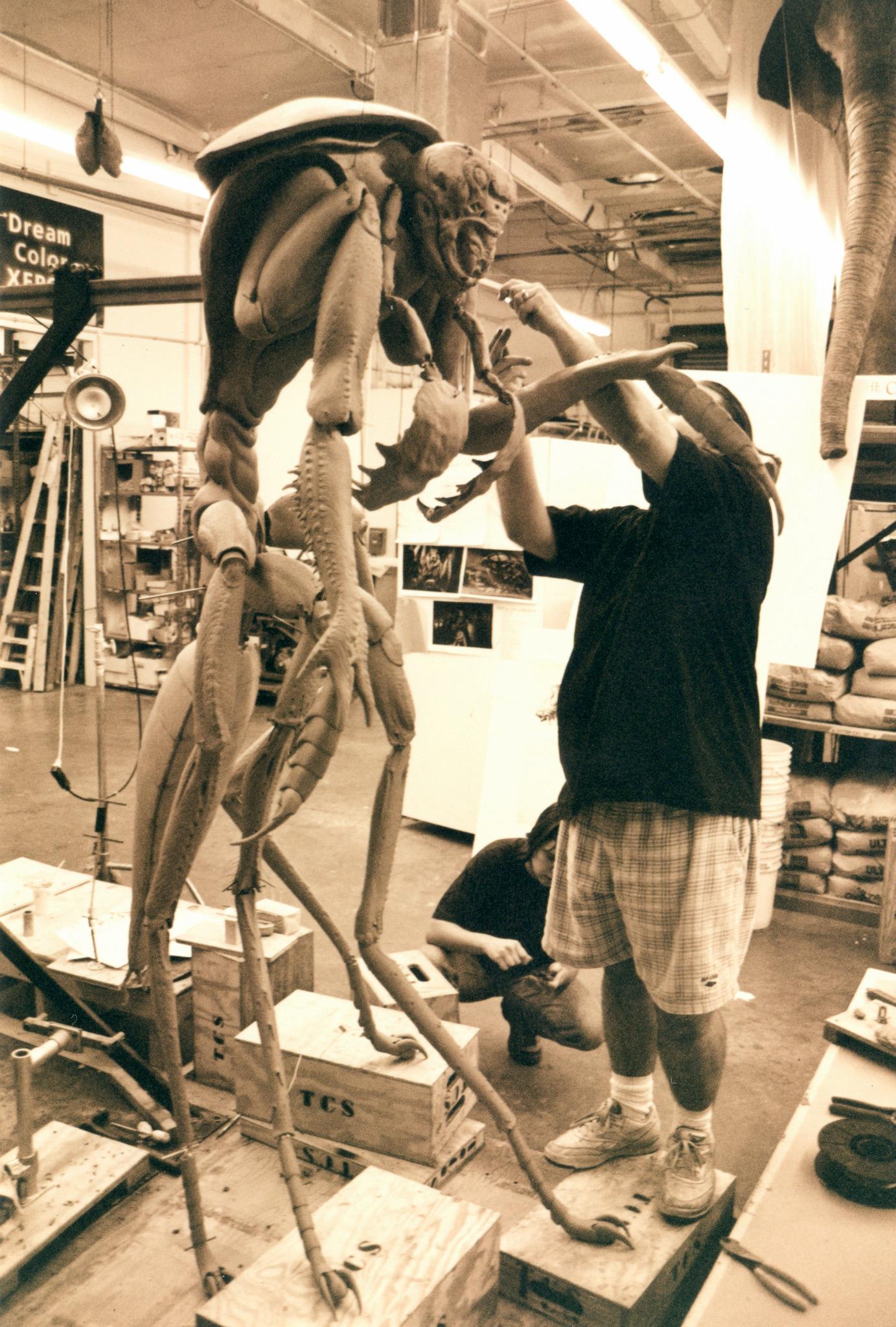 Concurrent with the design development was the need to begin work on the actual full-size Mimic animatronics required for the picture. Rick Lazzarini’s Character Shop was hired for the task, in light of the realism of their work on Outbreak, the elephants for Operation Dumbo Drop, and the frogs featured in the Budweiser commercials. “He [del Toro] said that a few of our puppets were the most realistic things he’d seen,” said Lazzarini, “and he thought that that kind of approach works well, whether you’re doing something that’s scary or cute or what have you. It’s an attention to detail that works across the board.”