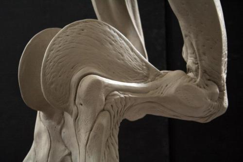 Pilotlegsculptdetail Detail of the leg sculpture; the sculptor was inspired by a Corythosaurus skull.
