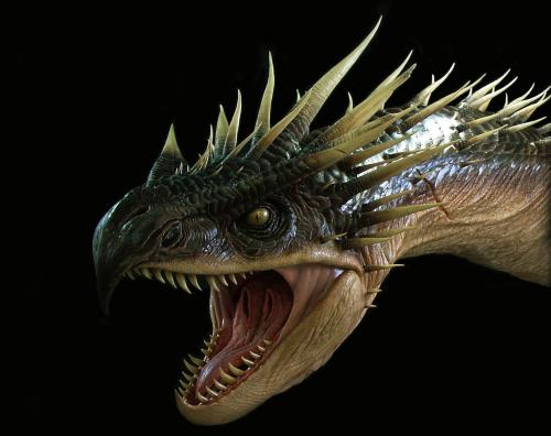 Based on the approved design, Kate Hill sculpted two quarter-scale Horntail maquettes, which were moulded in fiberglass and painted for reference. A larger scanning model was then devised and supplied to Industrial Light & Magic to create the digital model of the dragon.