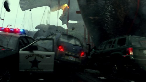 The creature attacks the Golden Gate Bridge — a landmark destruction that Hickel initially wanted to avoid. Ultimately, however, “it establishes Guillermo’s design imprint and what’s unique about his vision for this film: this big, protruding axe crests from the head, the colouring of the creature, and the bioluminescence. All those things are more unique and less expected, so it hopefully gives the audience both messages: yes, the film is going to have the thing they came to see, Godzilla-size monsters wreaking havoc, and yet it’s not going to be Godzilla; it’s going to be monsters they’ve never seen before, that look different than they expected.” The Axehead digital model was created starting from Knifehead’s, which was modified in order to accommodate the namesake Axe-shaped crest on the head, as well as different — more prominent — claws on the arms and other cosmetic differences.