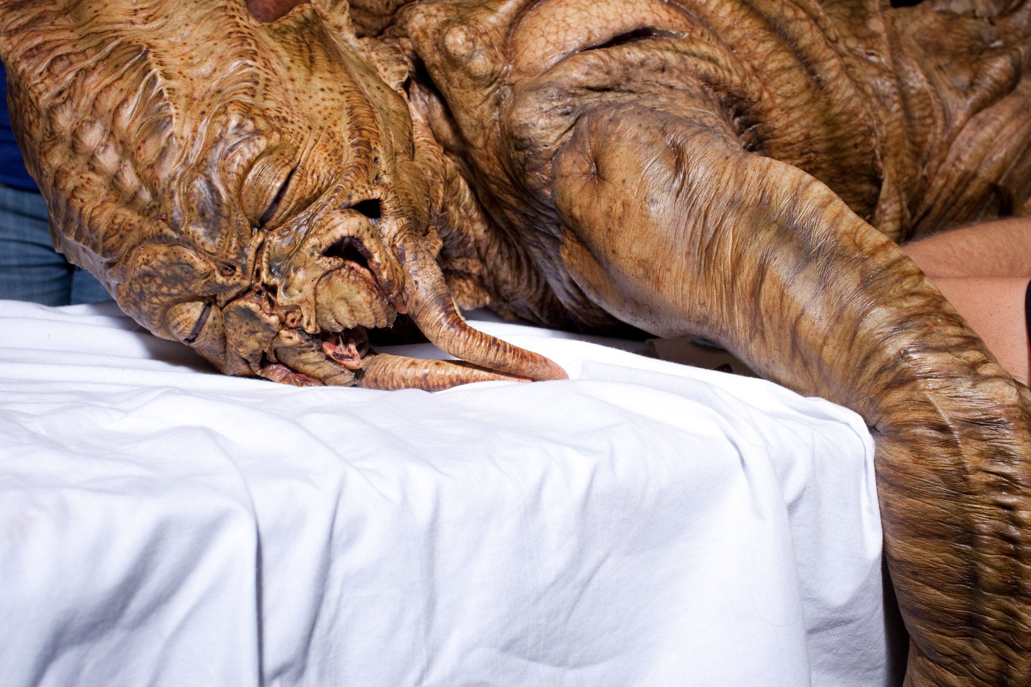 The Skitters were brought to life both via digitally generated imagery, as well as practical effects. The digital models were obtained by scanning MasterSFX’s sculpture. Originally, the visual effects part was to be predominant, but due to budget reasons, the practical effects were given more space. Greg Beeman, executive producer, said: “as we started to do the series, we realized that, especially for close-ups and medium shots, to build the puppet would be cheaper [than the CGI].” Generally, the digital Skitters were used only for the more visually complex sequences, with the practical versions occupying most of the screentime.