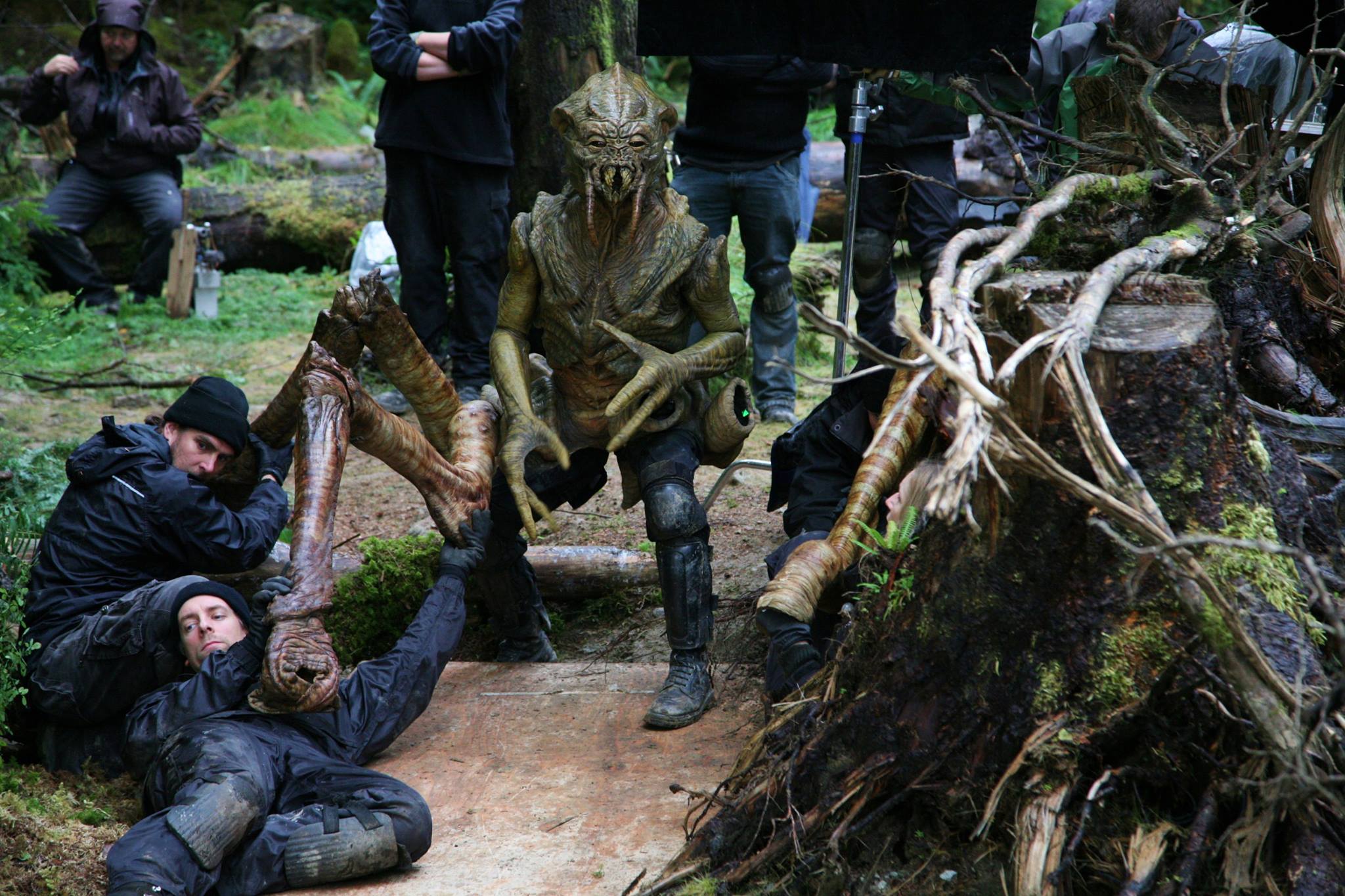 The original concept art for the Skitters is credited to designer Ryan Church; sent to Todd Masters’ MasterSFX, it was then used as a starting point for more elaborated and refined concept art studies, by Court Chu. The basic concept of a multi-legged reptilian creature remains, with the final design combining humanoid traits with elements from arthropods and reptiles. What the artist did was “a reworking of the original concept supplied by the production,” Masters said. “We couldn’t tweak it too much, but Court rocked out several amazing versions to dial in this species’ overall look.”