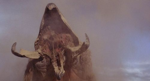 Wilson and Maddock in fact wanted “an unusual mouth,” and Gillis and Woodruff provided one — trying to stray from usual design tropes. “We also got rid of the idea of sharp teeth,” Gillis said. “We based the look on the head of a snapping turtle, with side mandibles angled down that could act as scoops. It looked threatening and like it could cut you up, but there were not the standard pearly white fangs you normally see on a monster.” Woodruff also told io9.com: “from our earliest beginnings and influencing the design of the Graboid by studying elements of a snapping turtle, I’ve always believed that the audience needs something to anchor a creature to real life. I believe true, unfettered art can exist in a different template but as part of the story-telling of movie, I want the audience to believe our work. So if they see the silhouette shape of a snapping turtle or the heavy skin breakup of an elephant or rhino it helps turn the gears in the head to believing the whole package.”
