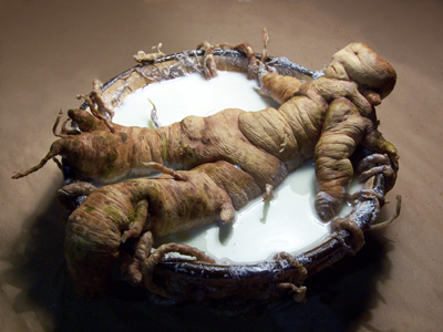 Ofelia is at first reluctant to complete the second task, due to the increasingly worse condition of her mother. The Faun gives her a Mandrake root that, in a bowl of milk and fed with blood, heals Carmen; Ofelia uses the Mandrake actually after the second task. The creature was brought to the screen as a featureless dummy at first, and then as a cable-controlled and radio-controlled puppet — mechanized by Bastida. The controls for its mechanisms were concealed inside the bowl of milk the Mandrake is put in. Many shots of the creature were also digital. “The Mandrake was real only in the scenes where it was tossed around,” Irastorza said. “Guillermo wanted the movement to be a little more fluid, so we used the puppet more as reference and re-created it digitally.” The Mandrake also mimics Carmen’s movements, a complex animation sequence. “When she turned from side to side and adjusts her feet, the mandrake had to mimic those actions almost exactly,” Friedman said. “But because there’s a time delay the audience sees the mother moving first, so we had the mandrake perform the same thing with a broader movement to move the audience’s eyes there.”