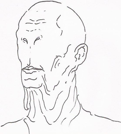 The creature was visually influenced by Francisco Goya’s painting Saturn Devouring His Son (1823) and, curiously enough, by an acquaintance of Del Toro and Irastorza. The latter commented: “the idea was for a man who had been very fat and lost a lot of weight quickly. This was based on a producer Guillermo and I had worked with, who was very old and had sagging, disgusting skin. This guy had been around for so long, we used to say he had been a production assistant on Battleship Potemkin — at least, that was the joke we made, lovingly.” Del Toro was also inspired by a quick loss of weight he had experienced.