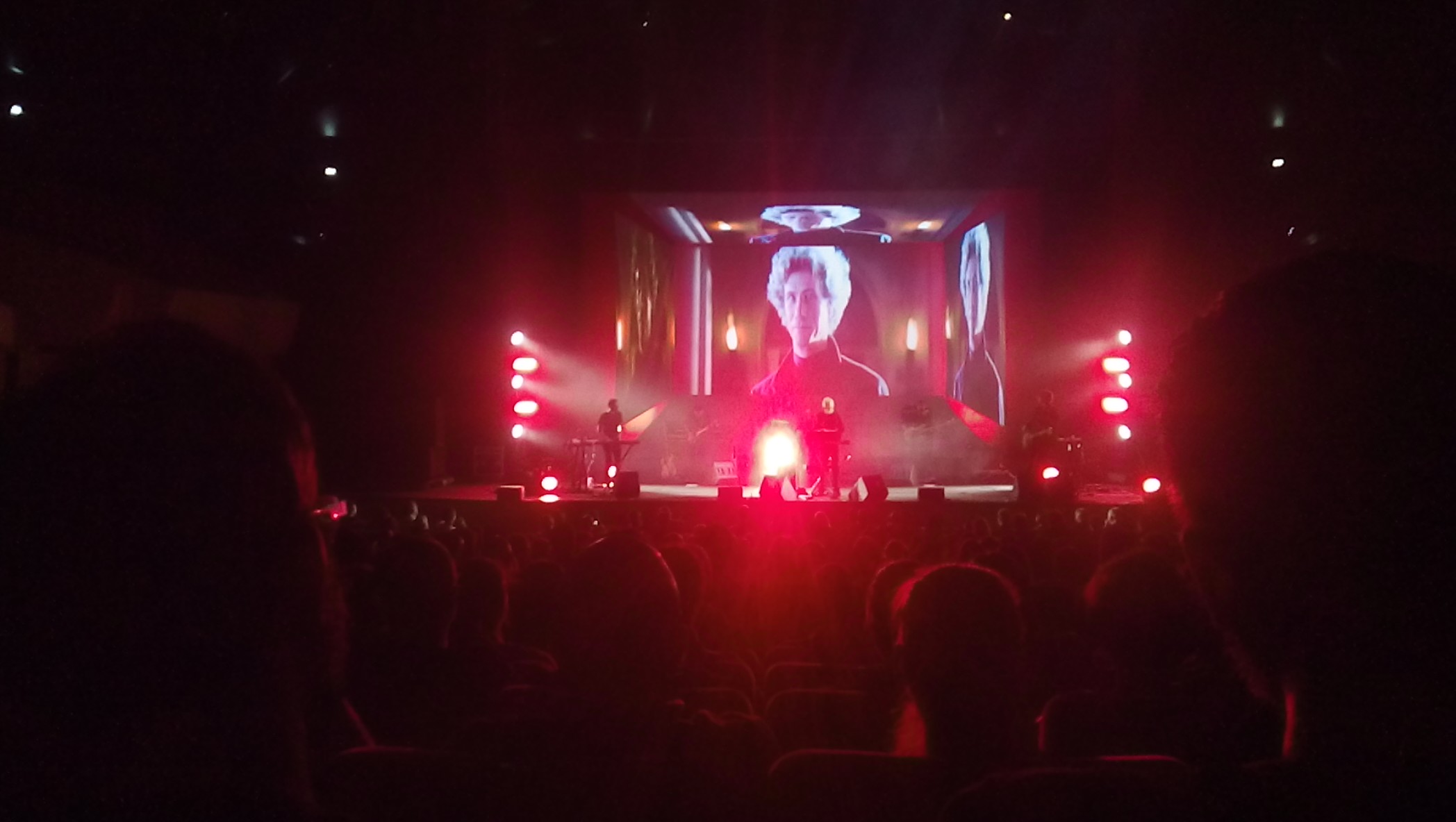 Two more songs from Lost Themes — Wraith and Night — serve as a moody prelude. “Horror movies will last… forever!” Carpenter declares, and the Halloween theme starts playing, infused with a tremendous and previously unheard power. As with all the other performances, the unique structure of the Santa Cecilia hall contributes to the incredible quality of the music effects.