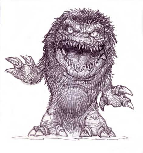 As the producers were against something that could be read as a man in a suit, the Chiodo brothers found inspiration in comic book and cartoon characters with exaggerated proportions. “For the design, they didn’t want to make it look like there was a human in a costume,” Stephen continues. “So all the appendages were reduced. So it couldn’t be a person there, a big wide gaping mouth that opened up out of a pile of fur. And as we were brainstorming about it, we would think, ‘okay, what is something similar out there?’ And I think it was Charlie who came up with the Tasmanian Devil, the Warner Bros. cartoon character, which is just a very tapered down, upside down triangle, or a cone with a giant mouth. And I think that was like one of the first takeoffs that he started doing. But he had a four-legged one like a dog. He had a lot of variations.”