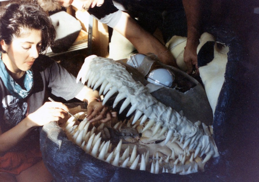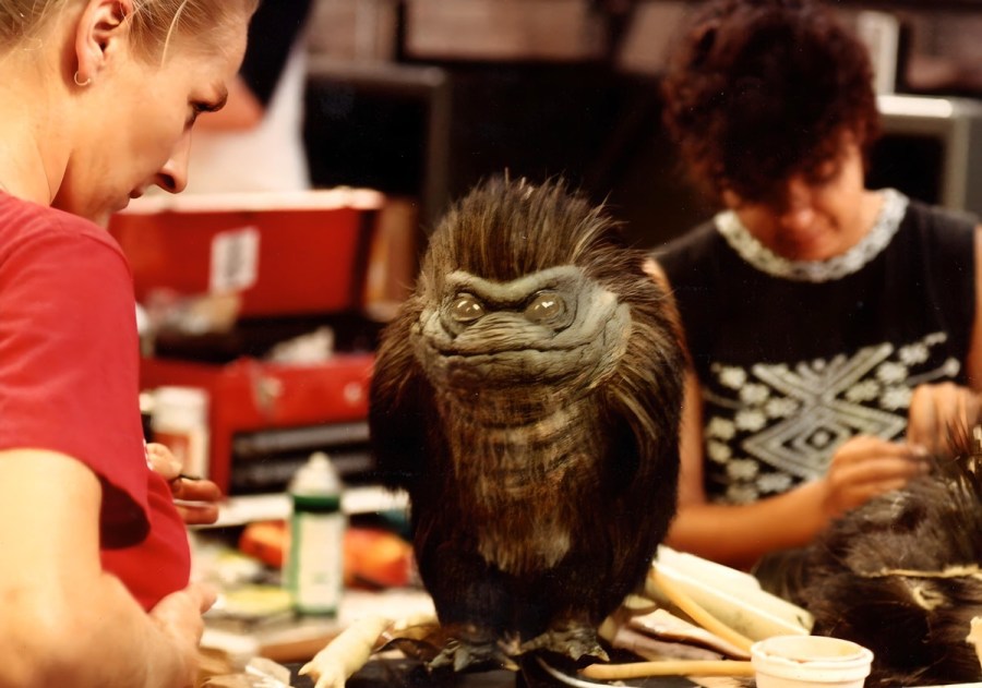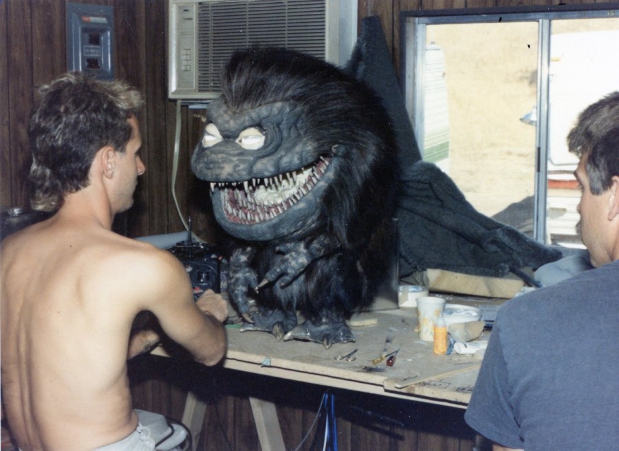 Edward Chiodo collaborated with lead mechanic Dwight Roberts — also assisted by Jene Omens — in conceiving and building the mechanics of the creatures. The main puppets were full-sized 13″ models, with radio-controlled eyes and blinking eyelids, cable-controlled faces, arms and hands, as well as bladders in the throat and chest to simulate breathing.