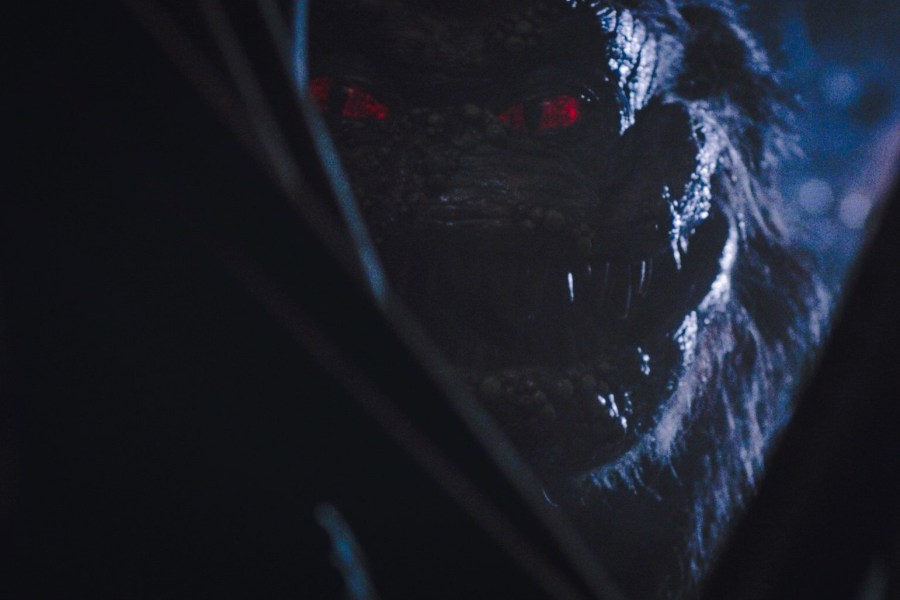 The limitations became immediately apparent to the stuntman. “I put the suit on, I was like, ‘son of a bitch.’ You know, this sucker’s heavy. I weigh 95 to 100 pounds and the suit weighs around 65 pounds, maybe more. So there I am, sitting down and putting this suit on and the mouth is down – it’s laying down because it’s heavy – and they say, ‘okay, can you bring the mouth up?’ I bend backwards to get the suit to move like they need and the mouth opens up and they say, ‘perfect!’ This is what the other guy they had originally cast was not able to do. So I ask them, ‘what is this monster, is it like a big dumb character type-of-thing?’ And they say, ‘oh no, no, no, you have the agility of a cat.’”