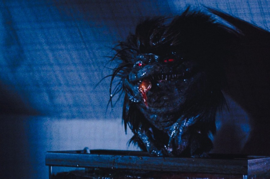 A number of puppets with specific functions was also built: Critters that rolled onto themselves, remote-controlled rolling-ball Critters (engineered by Roberts with a modified RC car within a sphere), Critters that could shoot their venomous quills, and a special puppet, devised by Gene Rizzardi, whose cheeks could puff up — for the scene where a Krite swallows a cherry bomb. Other puppets included hand puppets (used mostly for biting scenes) and stunt puppets that could be “thrown like a football” at an actor.