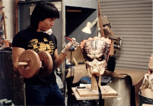 Rick Baker was contacted to bring the Predator to life, but could not join the project due to scheduling issues. Based on the groundbreaking work on The Terminator, Arnold Schwarzenegger thus suggested Stan Winston and his creature effects crew. The advice was quickly accepted. “My feeling from reading the script was that the Predator had to be a real character, rather than a generic creature,” Winston related. “He needed to be a very specific character — and that’s what we came up with.” By the time Winston became involved in the project, the time to develop and construct the Predator was significantly decreased — to only six weeks. He explained: “there was a lot of pressure to get this done, because production was waiting for the new character so they could start shooting again; and there was additional pressure because somebody else had already failed.  We didn’t want to be their ‘strike two’.  Not only that, we’d been recommended by Arnold, who was a dear friend, and we didn’t want to let him down.” To avoid schedule conflicts with the other project Winston Studio was concurrently attached to — Monster Squad — the crew was split in two.
