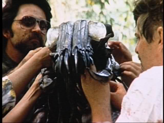 Rick Baker was contacted to bring the Predator to life, but could not join the project due to scheduling issues. Based on the groundbreaking work on The Terminator, Arnold Schwarzenegger thus suggested Stan Winston and his creature effects crew. The advice was quickly accepted. “My feeling from reading the script was that the Predator had to be a real character, rather than a generic creature,” Winston related. “He needed to be a very specific character — and that’s what we came up with.” By the time Winston became involved in the project, the time to develop and construct the Predator was significantly decreased — to only six weeks. He explained: “there was a lot of pressure to get this done, because production was waiting for the new character so they could start shooting again; and there was additional pressure because somebody else had already failed.  We didn’t want to be their ‘strike two’.  Not only that, we’d been recommended by Arnold, who was a dear friend, and we didn’t want to let him down.” To avoid schedule conflicts with the other project Winston Studio was concurrently attached to — Monster Squad — the crew was split in two.
