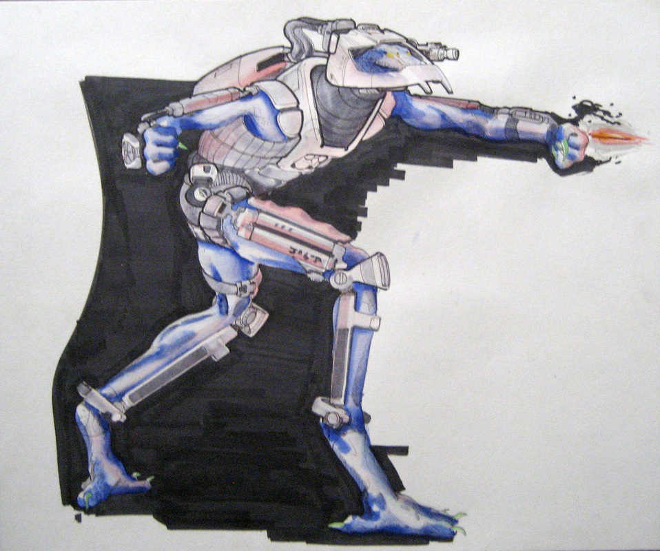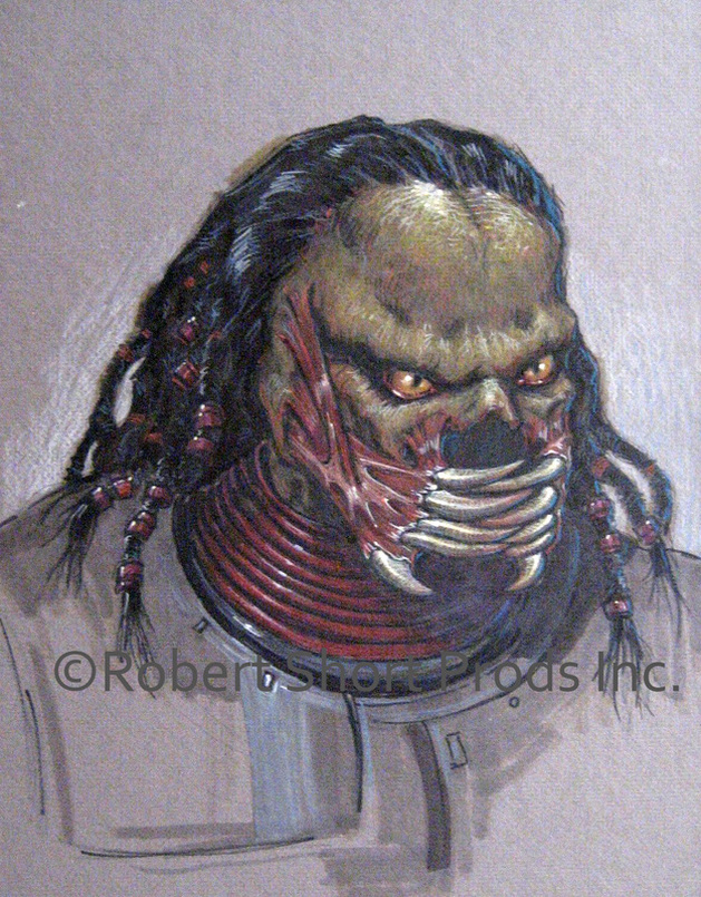 Thus, a new approach was devised — making the Predator a more animalistic character: a hunched beast wearing armour and a space helmet. It is at this stage that Robert Short and Alan Munro endowed the new creature with multiple mandibles on the sides of its mouth, an essential trait the two artists borrowed from their own unused concept art the they had devised for the unmade Roger Corman film Goblins.