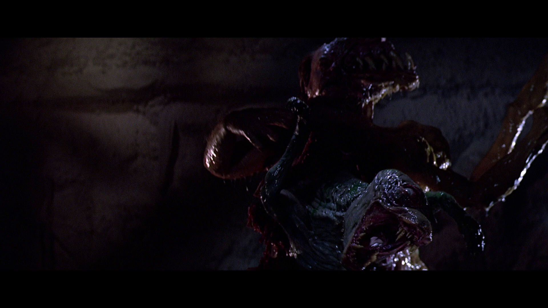 Both Bottin and Ploog found that a collaborative approach was essential. “Rob was always saying, ‘make it a big mouth,'” Ploog recalled. “So you’d say, ‘a big mouth is horrible. It sounds good, but it’s horrible. You have to have more than just a mouth.’ ‘Well, put some eyeballs on it.’ ‘But you can’t just put eyeballs on a mouth!’ Well, you go back and start playing with it, toying with it, pushing it and pulling it around, and then it becomes something. To be absolutely honest, you cannot say if one particular thing was your idea. It’s something that’s born out of an enormous amount of discussion. You can come up with a brilliant idea, but unless it has a certain degree of practicality, or a certain degree of cinematic believability, your idea is useless. It takes a marriage of minds.”