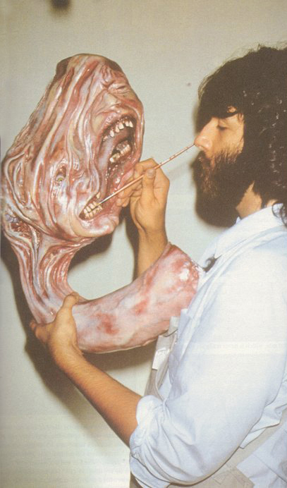 The already hectic work was worsened by pressure put on the effects crew by Universal executives, as well as the Make-up and Hair Stylists Union — which objected Bottin’s involvement. Combined with Bottin’s refusal to sleep normal hours and his questionable diet during work days, the overwhelming pressure resulted in the young effects artist being hospitalized. “The only reason I got sick is because what I do is very important to me,” Bottin said. “It affects me.” He would often be needed in several places at once — either designing, sculpting, supervising of others’ work, directing of actual effects scenes. The amount of needed work concentrated on him was overwhelming. “It takes a lot out of you,” he said. “There are only a certain number of hours in the day, and you start running around going crazy trying to do all this stuff.” Despite that, Bottin was enthusiastic throughout. “Frankly, I thrive on this stuff,” he said. “I love being under pressure. That’s the way movies are made, and it’s never going to change. I love being tortured.”