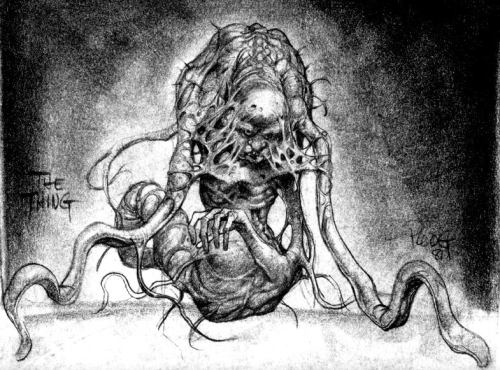 Although Ploog had completed the storyboards depicting the finale of the film, he did not have the chance to finalize the design of the final Thing iteration — the Blair-Monster, as it was dubbed by the crew. With Ploog gone to work on Superman III, such task was assigned to Huebner — who had to match the appearance of the other creature storyboards and effects.