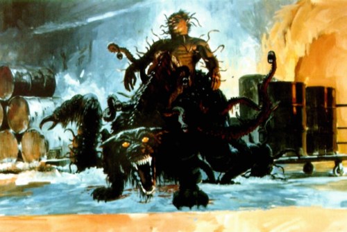 Cook had been hired by Bottin to assist with the creature concepts, but briefly left to work on an eventually unrealized adaptation of Graveyard Shift, which he had co-written. When that project fell through, Cook returned to Bottin’s crew to supervise the stop-motion sequences that had been proposed to depict the Blair-Monster, combined with a full-sized insert puppet. Storyboarded but never filmed was a series of shots where a whimpering Nauls is seen in the final stages of absorption, before his head erupts into a tentacle.