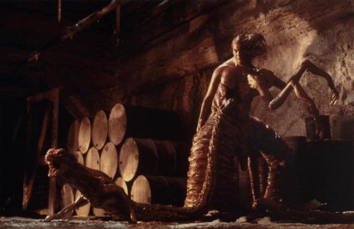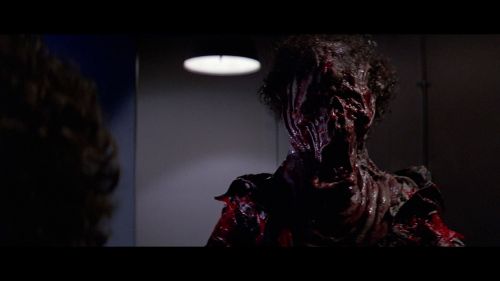 One important deleted sequence from the film involved Nauls’s death. In the final cut, he simply walks down a dark corridor and disappears; but as originally intended, he would have found Garry’s legs, only to discover that they were being assimilated by the so-called Box-Monster, dubbed such because it would have emerged from a large box like a Jack-in-the-box. The Box-Monster was built with a Blair head rigged with tentacles. As it was done in a rush, it had to be discarded as the results were not convincing enough.