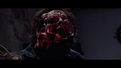 Originally, the Palmer-Thing was built as a puppet of Palmer’s head, which simply split in half — revealing a lunging tentacle. Deemed unconvincing, it was replaced with a transformation portrayed on the screen with progressive stages. Three puppet heads were devised with air bladders and shifting inner forms to portray Palmer’s swelling connotations and eyes — before they eventually explode, revealing a deformed skull underneath. According to Burman, the third puppet head was “a full head and torso puppet that was rigged with tubes to pump in various solvents to make the foam swell and distort.”