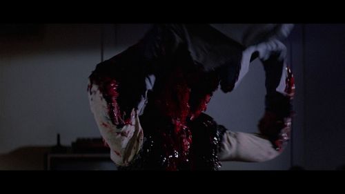 Before Palmer’s gruesome transformation, Carpenter and Cundey discussed about giving the audience subtle hints on who might be the Thing during the centerpiece of the film — the blood test scene — and eventually settled upon a subtle eye gleam. “We were looking for some kind of a subtle way, to say which one of these [men] might be human,” Cundey revealed. “You’ll notice there’s always an eye light, we call it, a little gleam in the eye of the actor. It gives life.” Palmer is devoid of the ‘eye-gleam’ moments before the transformation. “There is no eye light [on Palmer’s eyes]. Let’s make it look subtle like he’s different and the audience won’t know until later. So he has dead eyes.”