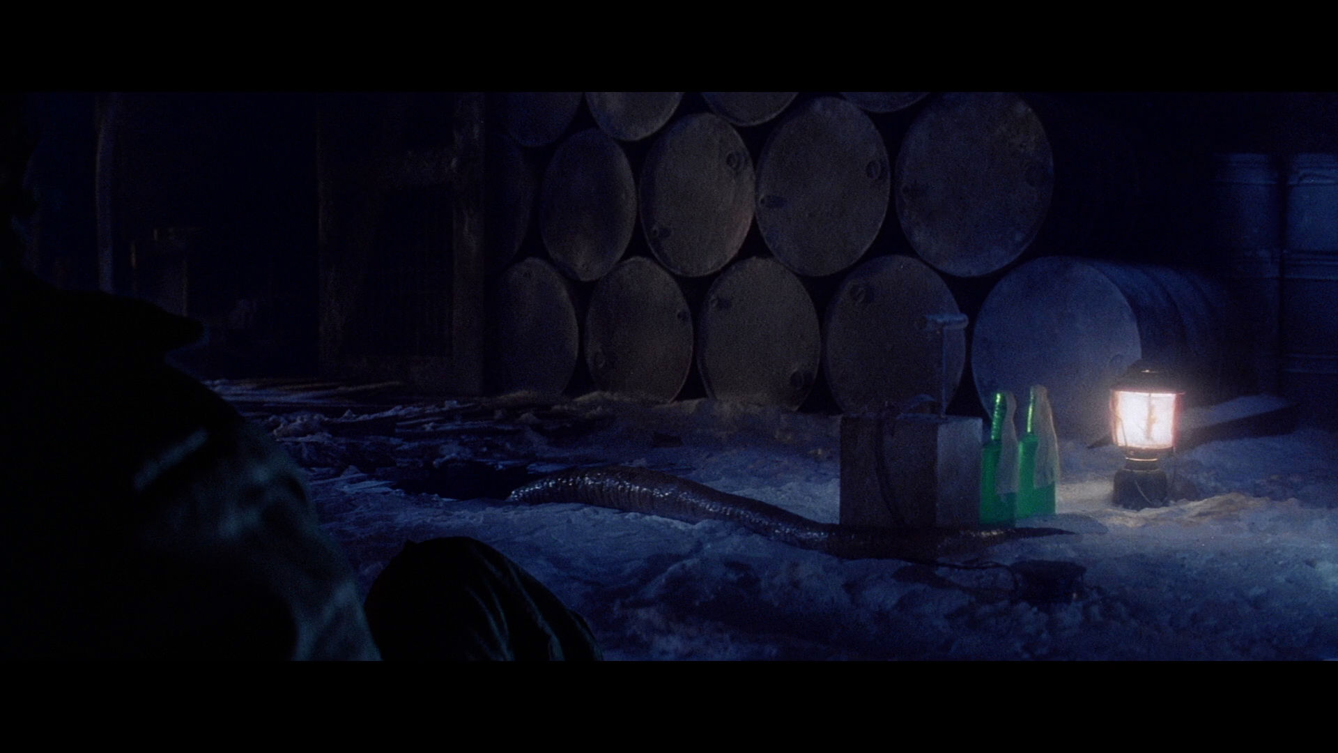 Before Palmer’s gruesome transformation, Carpenter and Cundey discussed about giving the audience subtle hints on who might be the Thing during the centerpiece of the film — the blood test scene — and eventually settled upon a subtle eye gleam. “We were looking for some kind of a subtle way, to say which one of these [men] might be human,” Cundey revealed. “You’ll notice there’s always an eye light, we call it, a little gleam in the eye of the actor. It gives life.” Palmer is devoid of the ‘eye-gleam’ moments before the transformation. “There is no eye light [on Palmer’s eyes]. Let’s make it look subtle like he’s different and the audience won’t know until later. So he has dead eyes.”