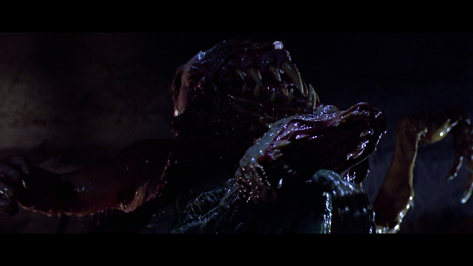 Cook had been hired by Bottin to assist with the creature concepts, but briefly left to work on an eventually unrealized adaptation of Graveyard Shift, which he had co-written. When that project fell through, Cook returned to Bottin’s crew to supervise the stop-motion sequences that had been proposed to depict the Blair-Monster, combined with a full-sized insert puppet. Storyboarded but never filmed was a series of shots where a whimpering Nauls is seen in the final stages of absorption, before his head erupts into a tentacle.