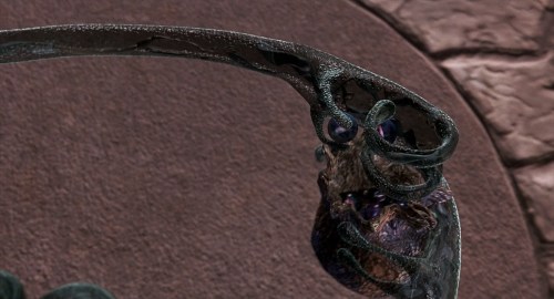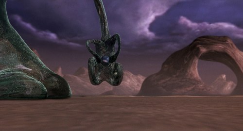 The galaxy player was modeled by Tony Hudson and endowed with several internal components portraying its circulatory system and pulsating organs, as well as a translucent green skin and flesh. The shot was designed at ILM by digital artist Derek Thompson and supervised by Scott Farrar and technical director Pat Meyers.