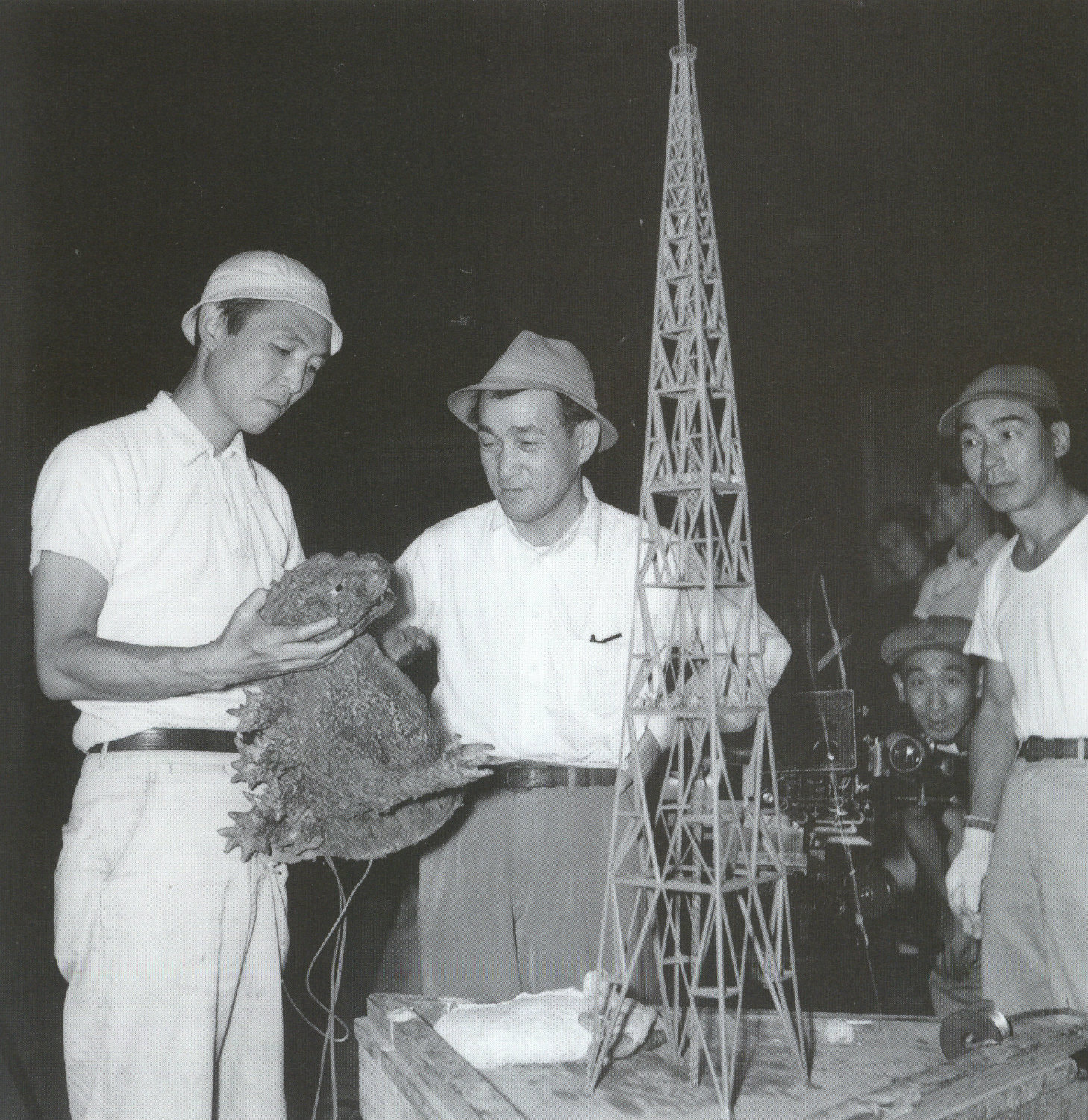 Shooting of the various creature effects sequences was no easy task; accidents frequently occurred on set, and Nakajima had to input considerable force while inside the suit to correctly destroying the miniature buildings. The long working hours led to an in-joke among the crew — according to which Gojira’s name rhymed with goji (5 AM). Despite the improvements in the second suit, the inside of it was still hot for the performer — to the point where the sweat-soaked suit had to be dried after filming, and during filming it frequently took internal and external damage — which had to be repaired either between takes or after shooting sessions.