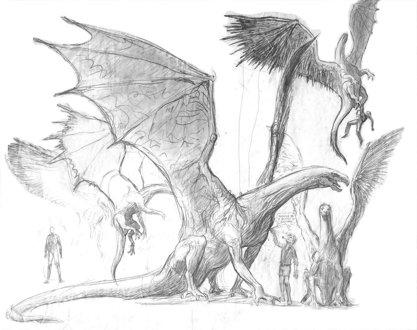 “Larry wanted to see a complete design breakdown of the thing,” Cook said. “I was a bit suspicious of him, since all we had talked about were these amorphous shapes zipping by the camera.” Cook’s design represented a streamlined dragon-like beaked creature, with little resemblance to the traditional depiction of Quetzalcoatl. “I drew up a flying dragon which looks nothing at all like Quetzalcoatl,” he continues, “but I thought that a naturalistic, sculptural rendering that was faithful to Aztec mythology would be too boring for my taste. Besides, I had a dragon design that I’d wanted to do for ages. So I dredged up this old chestnut, and Larry bit on it.”