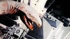 The fact that Cohen decided to hire a visual effects crew only after the three-week principal photography had been finished put an additional weight on the workload. “Larry was very flexible with us, and we had a great deal of freedom within the obvious limitations,” Allen said. “Of course, since we were presented with a ‘finished’ film, there were no storyboards at all to begin with. Randy boarded a few things and Larry photographed new scenes to satisfy certain concepts — pickup shots in New York of people gaping in awe and new plates of the Banker’s Trust building for the shot of the bird crashing into the tower.” A key shot of David Carradine turning in surprise as Q’s head appeared behind him — originally shot with the full-size head — was also reshot as a bluescreen composite featuring the close-up model.