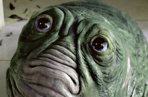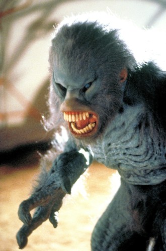 Gray discovers a trail of flatworms, which leads him to a water tank with an aquatic creature within. This ‘leech’ alien was designed by Tippett Studio and animated by PDI. The next spawn of the evolutionary cycle is instead an amphibious monster that emerges from the a golf course lake, snatching an unfortunate country club member. This creature, dubbed the ‘tiphibian’ by the crew, was designed by Peter Konig. The design combines reptilian and mammalian characteristics: its skull, fundamentally based on that of a horse, is endowed with protruding teeth. Exposed gums and goat-like eyes complete the look of the head, whereas a hairy hump lines its back. Its colour scheme was based on predatory cats. While the living tiphibian was portrayed with a digital model, the dead Tiphibian brought by Gray to the professors was a foam latex dummy provided by KNB.
