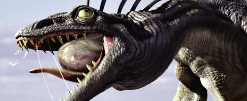 The birth sac was especially challenging to visualize and produce as a digital element. Its most problematic characteristic was the amniotic fluid-like substance encased within, because — Reynolds explained– “modelling anything that’s soft and squishy and translucent is tough.” Ultimately, Tippett Studio used multiple approaches: views of the fluid inside the sac were performed by tweaking and slowing down stock water elements in the Studio’s library; more elaborate shots of the goo as the newborn monster emerges employed a dynamic particle system. “The animator attached points by hand,” Reynolds continues, “and then the software calculated what would happen to the goo when, for instance, the creature’s wing lifted up and stretched the goo out.”
