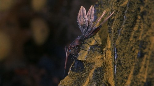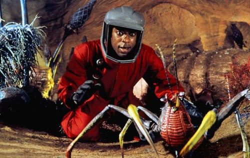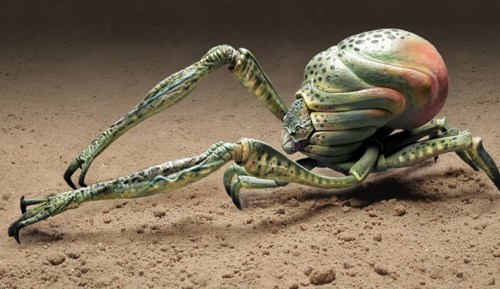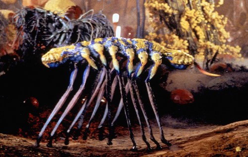 The set was digitally scanned to devise a double for digital creatures to move in. Visual effects co-supervisor Frank Petzold noted: “we were given enough digital information to create a highly detailed model within which the digitized creatures could move in an entirely convincing manner.” Lively fauna flew, crawled and slithered in the environment: Tippett Studio devised several digital arthropod-like aliens, including: the centipede-like ‘swarm crabs’; coconut crab-like creatures; a large predator dubbed ‘butthead’ for the shape of the back of its head; and a bizarre millipede-like creature with a head on each end of its body, which is quickly eaten by a carnivorous plant.