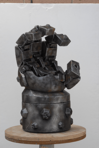 Setrakian also commented on a peculiar part of Wink’s mechanical arm — what he called the ‘chain nozzle’: “when Wink closes the hand into a fist, he can deploy it as a weapon and launch it and there is this spinning gear/chain winding thing that extends and retracts the chain, which is something that was on our build list; but I recognized that we needed to make something like that, so I designed this thing and produced it and a lot of people were impressed by that and actually wondered if it was some industrial thing but it’s just so evil-looking that I think it’s very much in keeping with Wink’s design. Also, Guillermo loves anything with gears and he also loves anything with resembles an orifice, so this was the perfect combination of those two things.” Setrakian designed and build a servo-driven hand apparatus that could be deployed on a chain and retracted through an opening in the wrist. The device was self-contained and remote-controlled.