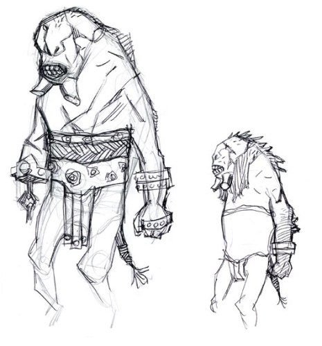Artists like Wayne Barlowe and Francisco Ruiz-Velasco Francisco devised further iterations of the character, defining Wink’s anatomy with other mammal-based traits and a tough, elephant-like or rhinoceros-like hide — with wrinkled and dry skin — all under Del Toro’s specific direction. Torres described the process: “I basically got a couple of designs and did some little maquettes off those designs. Mike Mignola had some input, because he did a rough doodle, but I basically took their sketches and did a couple of bust maquettes and they chose one and then I took that little maquette and did a full-sized maquette, which was going to be used for scanning at one point, but it ended up being a design maquette for us for the costuming and overall size of the character when we were sculpting it on Brian Steele’s body. I basically tied all the drawings together and made it look like what it was.”