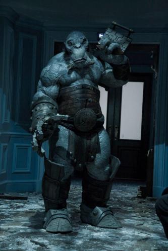 The suit’s size also allowed certain advantages: “because the character was so enormous,” Torres said, “it gave us a lot of freedom to put in the servos and movement that we wanted so it didn’t necessarily have to be done in CG. It could be a practical effect, so Wink could be there interacting with other actors and most of all, Guillermo could actually see it in front of him and see exactly what he wanted it to do and what he visualized, such as when Wink gets into a fight with Hellboy, for example.”