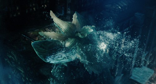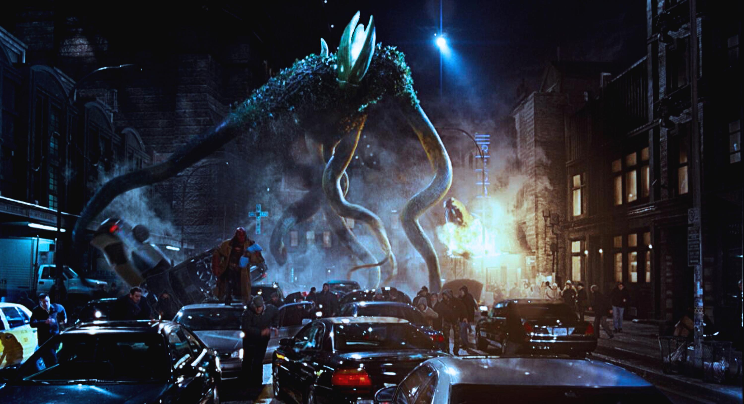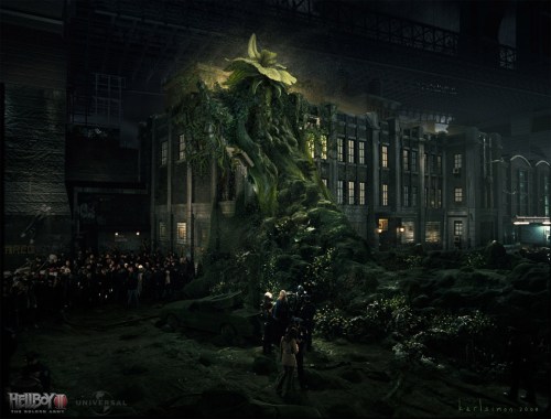 Mister Wink’s demise enrages Prince Nuada, to the point where the elf royalty, in retaliation, unleashes a Forest Elemental to kill Hellboy. The creature first appears in a small, bean-like shape; upon contact with water, it grows into an immense, 100-foot tall tentacular plant-like monster.
