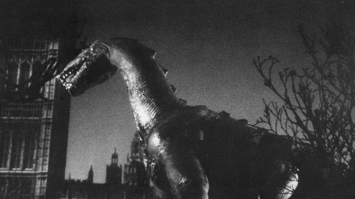 Concluding Eugene Lourie’s ‘dinosaur’ trilogy (the other two representatives being Beast and Behemoth), Gorgo takes inspiration from King Kong — again, a creature forced onto a new context, but unlike Kong (and more like Grendel) the little Gorgo is a baby, and it is only a matter of time before its rampaging mother tears London apart to reunite with its spawn. Going against the tradition of its predecessors, Gorgo also ends its story on an heartwarming note: the mother and its baby reunite, and with no further desire to destroy, they depart to the seas.