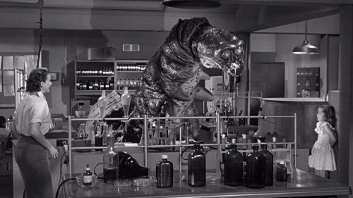 One of the better entries in the 50s monster boom, especially noteworthy for its creature design: the abyssal mollusk’s head is reminiscent of a human skull, making the viewer subconsciously associate the monster with death itself. While this would become a relatively common trope after Alien, in the 50s it was far before its time.