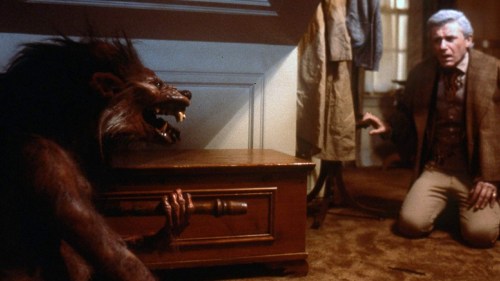Director Joe Dante and screenwriter John Sayles deliver a remarkably witty narrative, packed with loving homages to the roots of werewolf cinema. The Howling‘s groundbreaking effects baptized Rob Bottin — a protegé of Rick Baker at the time — just one year before The Thing. Its feral werewolf designs remain most influential, breaking from the norm of a man with subtle wolf-like features and revealing a truly bestial form.