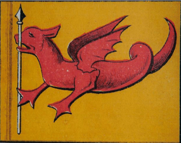 Dragon figures in English Heraldry have a rich history, starting from the fabled Roman origin of King Arthur. The Historia Brittonum, written in the late 1st century (around 820 DC) tells of two fighting dragons under the foundations of King Vortigern’s fortress — a white one (symbolizing the Saxons) and a red one (symbolizing the Britons) that would in the end prevail.