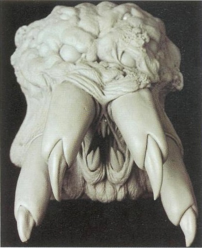 Defining Shelob’s inner mouth parts proved most challenging, as reported by Wootten: “after the initial sculpt had been approved and scanned, Weta Digital quickly realized they would need to have a much more detailed understanding of Shelob’s mouthparts in order to create a working digital model. Due to the deadline imposed on the digital animation team, only a day could be spent designing the mouth workings. The quickest way to achieve this was through an augmented version of the original sculpt. We poured a hard plasticine copy from the existing mold and quickly worked the mouth details into it. The design brief was to the point: scary and disgusting. From memory, I conjured up a combination of the most vile images I could think of and worked them around the existing mandibles: squid beaks, crayfish mouths, and various ‘organic apertures’ were the main inspiration. The only change Peter made to this design was to remove the large middle tooth at the top of the mouth. The digital team did an amazing job of breathing life into the design.”