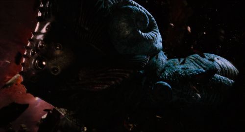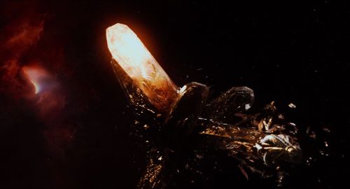 The Ogdru Jahad are first seen at the beginning of the film, trapped in their crystal prisons. “The problem was developing a look of the crystal so that you could see it and see what was inside of it,” said Rothbart. “It is difficult to make a shiny, illuminated thing look natural in a black space environment.” He also added: “the Ogdruh Jahad creatures are huge, over 200 meters, and so we had to figure out a speed and style of movement that would suggest that massive scale.”