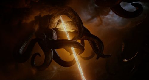 In the climax of the film, Hellboy opens the hell-hole, and the deities are unleashed from their prison. Despite that, Del Toro decided to frame and light them so that they would still appear concealed somehow. “In true lovecraftian fashion,” said Mignola, “we shouldn’t ever see them. What you don’t see is gonna be a lot worse than what you would see.”