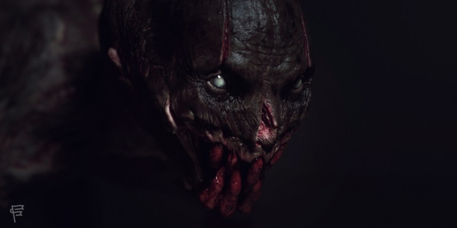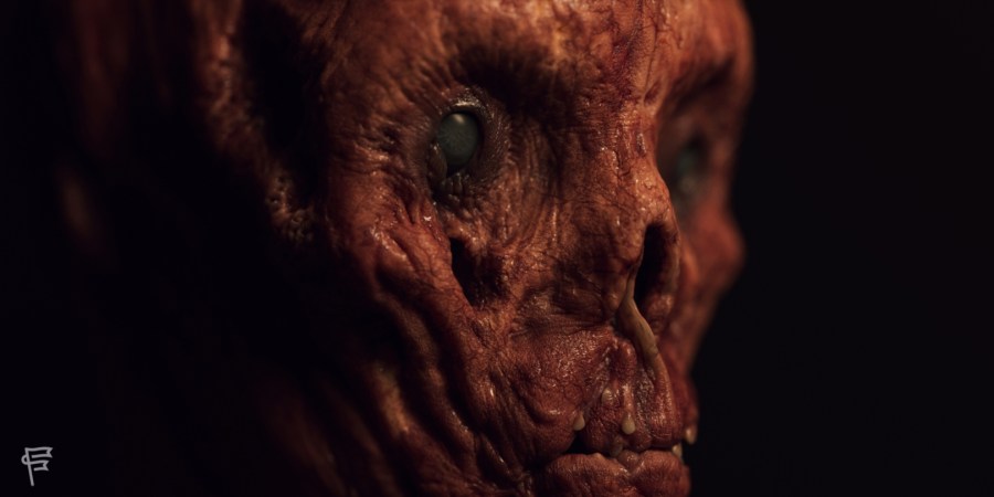 Subtle references to Pennywise were added to the facial texture. “I wanted the creature to have a certain Stephen King-esque quality”, said Piche-Delorme. “Therefore, I drew inspiration from Pennywise, which is why the Boogeyman has a long, triangular-shaped scar eyebrow and a devilish smile. The reddish elements are also influenced by King’s style.”