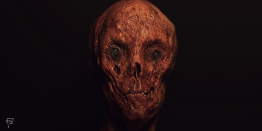 Beauvais thus began spearheading new design explorations. One idea that survived from the previous iterations was Thompson’s concept of fingers within the monster’s mouth doubling as fangs or teeth. Otherwise, the artist referenced mummified corpses, and was largely inspired by the works of Zdzisław Beksinski, “whose imaginative world deeply inspires me,” he said.