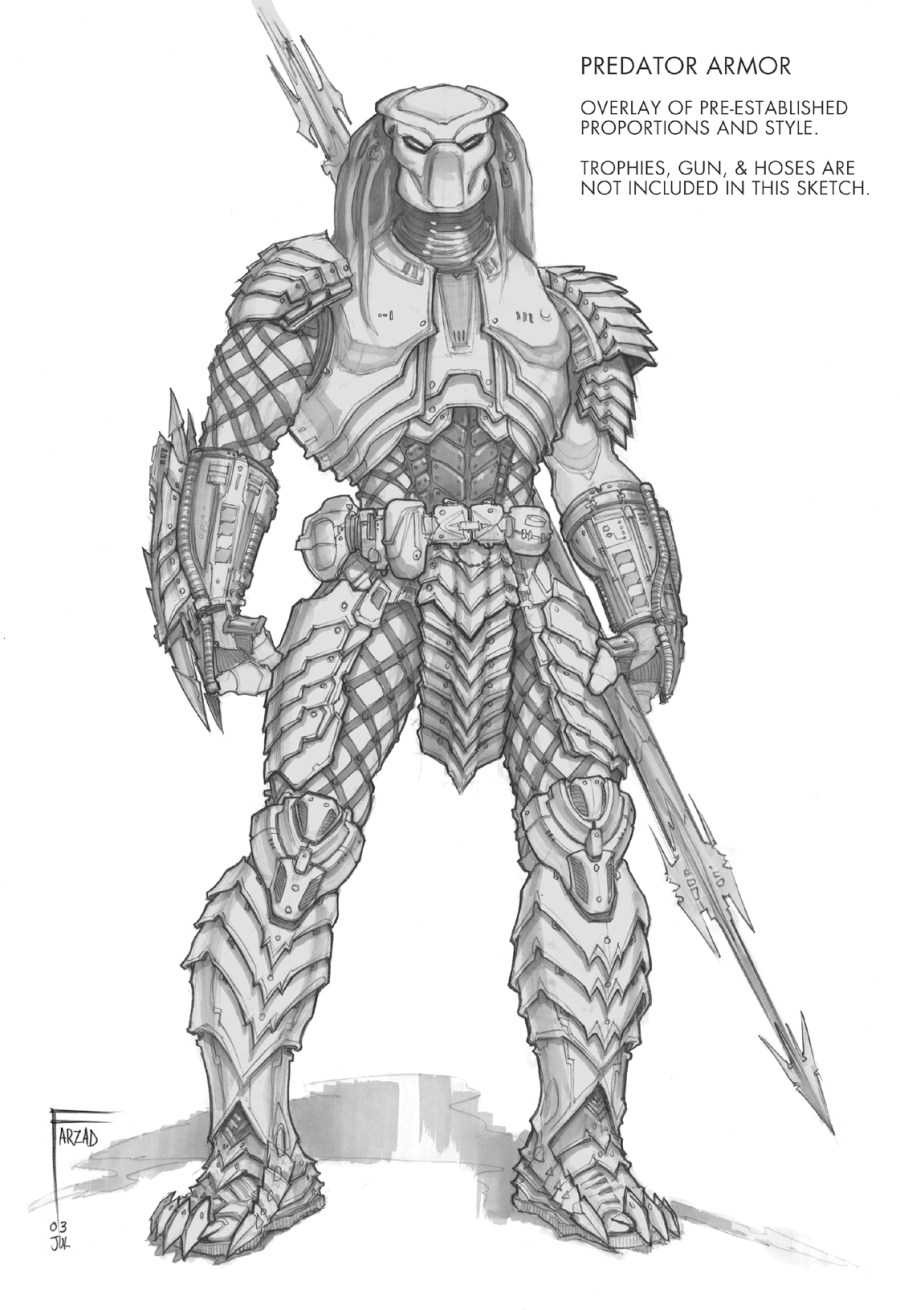 Anderson decided that his Predators should be more imposing than before, with a more muscular build and more extensive protective armour. The choice also stemmed from the simple notion that, since they would be fighting such formidable opponents, they should come prepared for the task. Anderson mused, “we figured that, for the Predators, hunting Arnold Schwarzenegger and Danny Glover had been like hunting squirrels. When you hunt squirrels, you don’t need that much armour; but when you hunt Aliens, you know there is going to be acid blood spraying aroud, so you need more of it.”